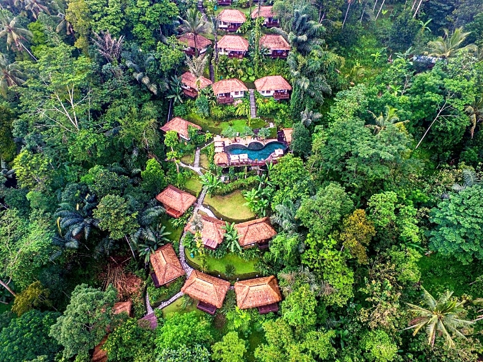 Featuring traditional Balinese structure and constructed from natural materials, this spacious one-bedroom villa offers views over the river gorge at sunrise. The room is also fitted with air-conditioning, a balcony, mini-bar, dining area, tea/coffee making facilities, a personal safe, and flat-screen satellite TV with DVD player. • Daily complimentary shuttle to Ubud downtown based on the Resort's schedule • Daily Balinese afternoon tea from 3 – 5 PM at Wild Ginger Restaurant • Daily Village Tours based on Resort schedule • Free Cycling Tour around the village