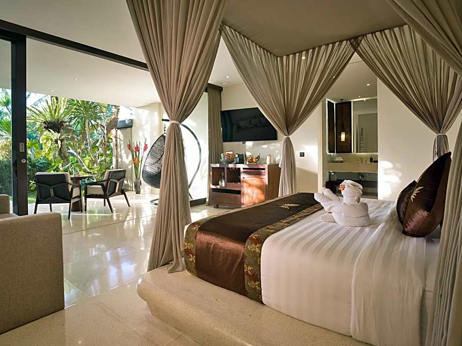 This suite features an outdoor bathtub and a private balcony overlooking the jungle. The room is also fitted with air-conditioning, mini-bar, dining area, tea/coffee making facilities, a personal safe, and flat-screen satellite TV with DVD player • Daily complimentary shuttle to Ubud downtown based on Resort's schedule • Daily Balinese afternoon tea from 3 – 5 PM at Wild Ginger Restaurant • Daily Village Tours based on Resort schedule • Free Cycling Tour around the village